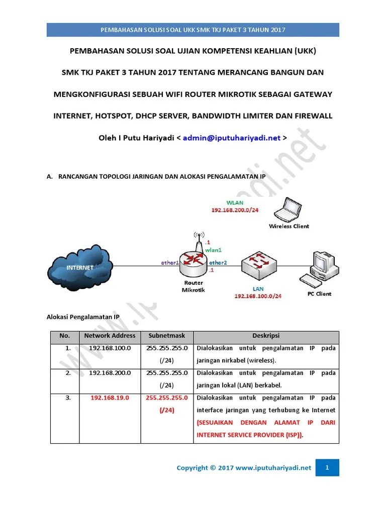 Untuk pembahasan soal ukk / upk tkj dapat dilihat panduan tutorial pdf dan . Membuat laporan tertulis tentang konfigurasi yang dilakukan. Ini adalah ujikom paket tiga uploaded by moch. Apabila terdapat pertanyaan, jangan segan . Gunakan alat keselamatan kerja sesuai fungsinya.
